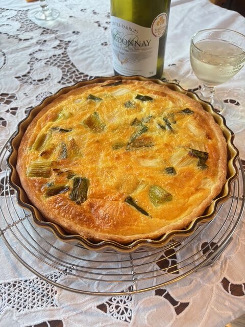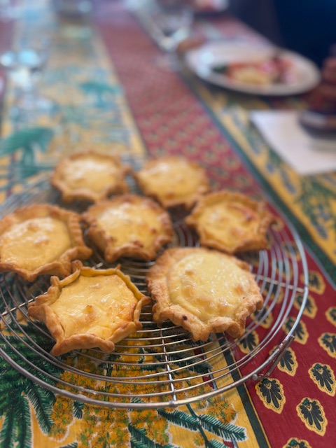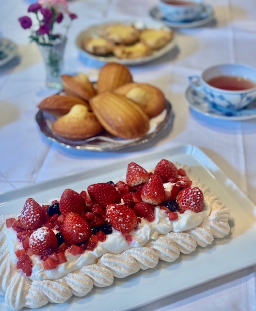 デザートは、タルト・ヴォードワーズというスイス、ローザンヌ地方の伝統菓子を家庭でも作れるようにヨーグルトと生クリームをつかって作りました。