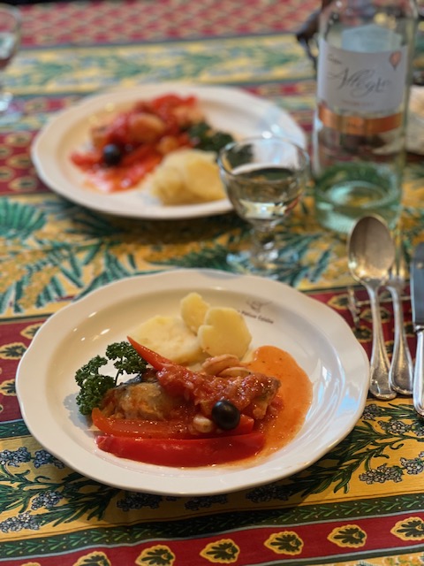 ばれる魚料理。最後は、エスペレットの唐辛子を利かせます。