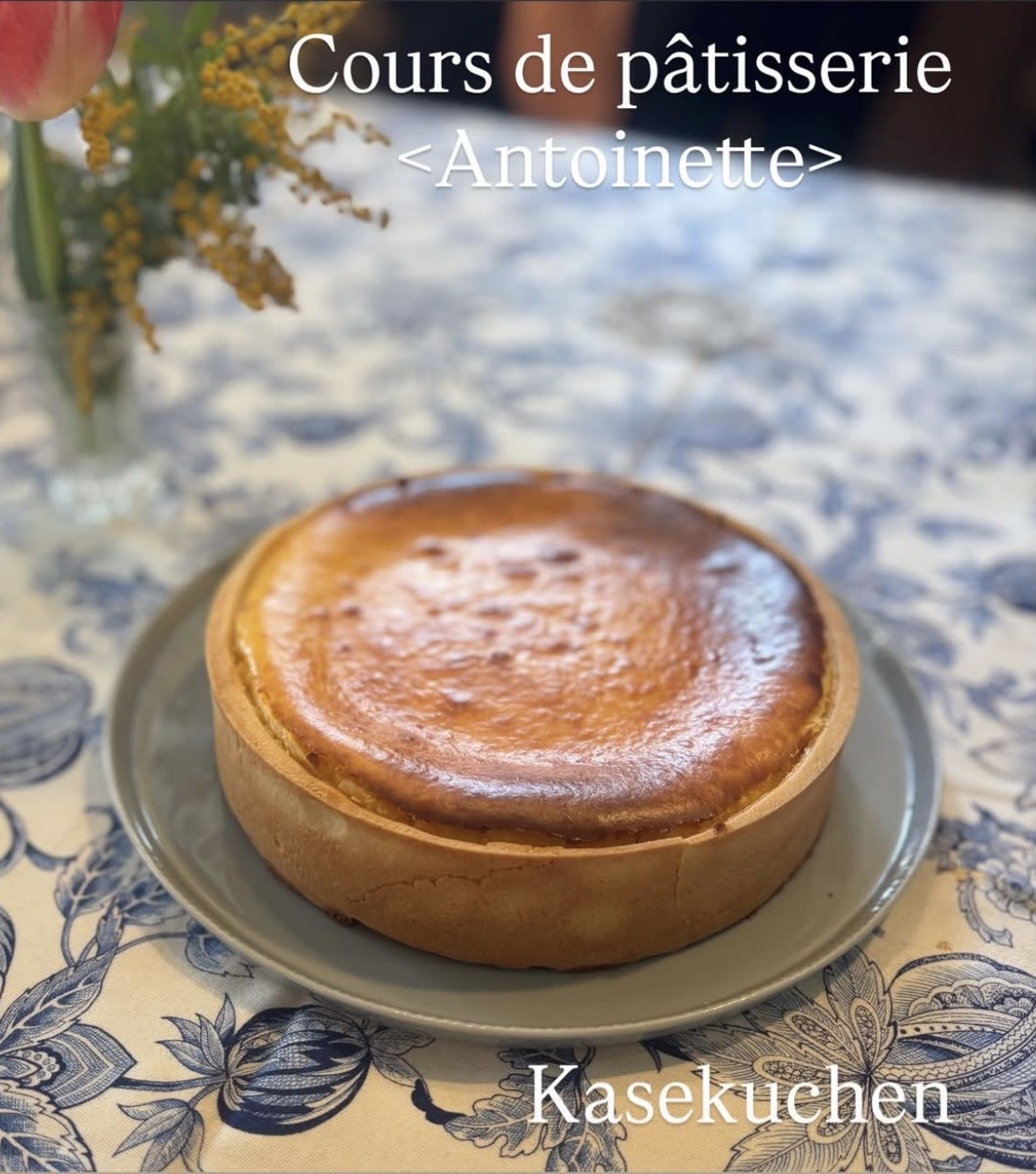 高さ4cm。今週末のアントワネットお菓子クラスでは、ドイツのチーズケーキ、ケーゼクーヘンを作りました。