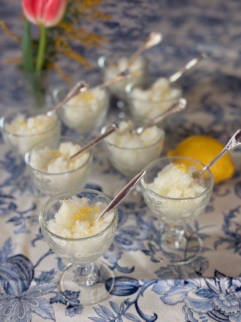 中には、メロンとブルーベリーば潜んでいます。召し上がる直前にグランマルニエを!