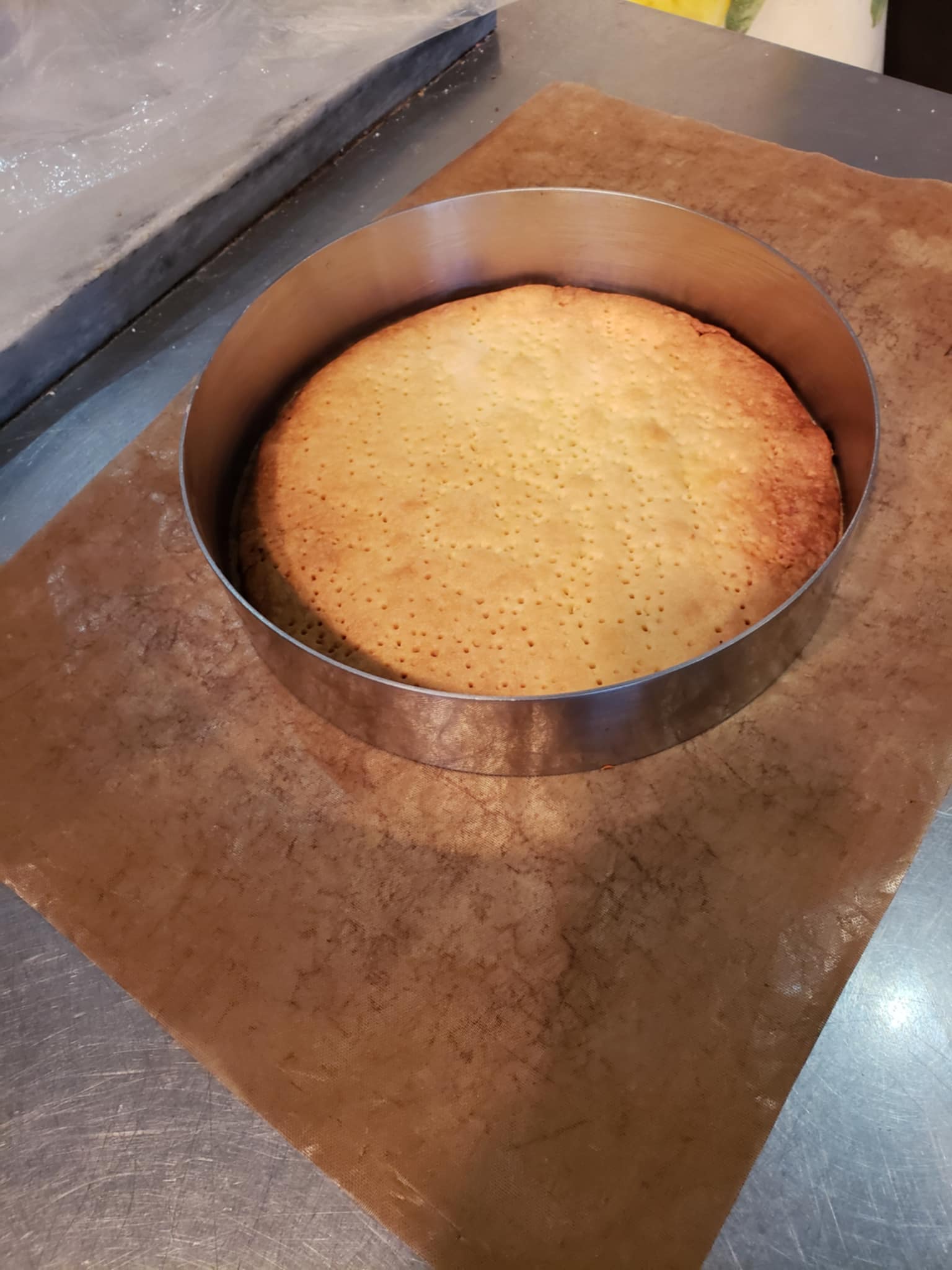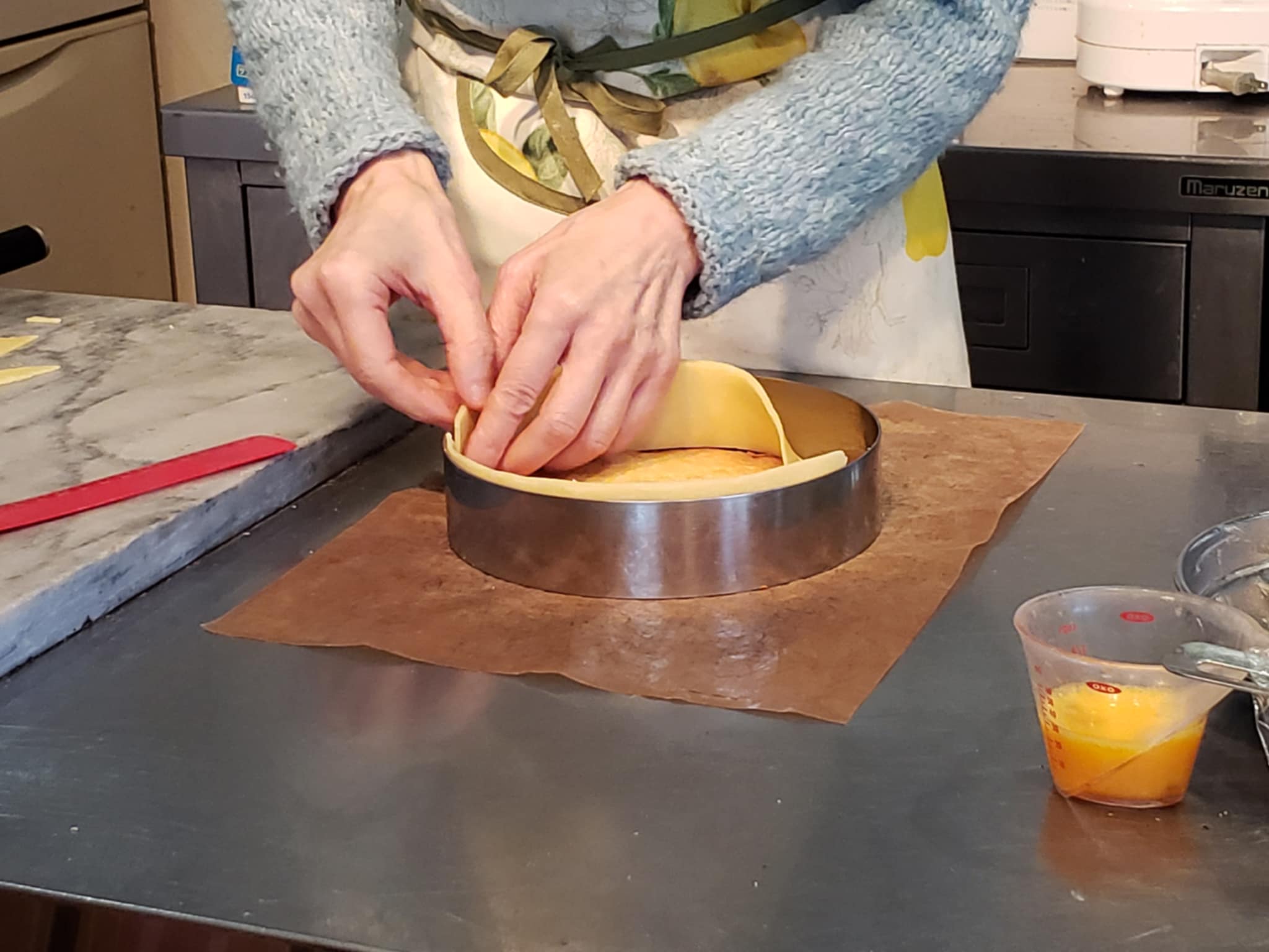 高さのあるセルクルで仕込みましたが、アパレイユがゆるいので、底のパートは焼いておきます。
